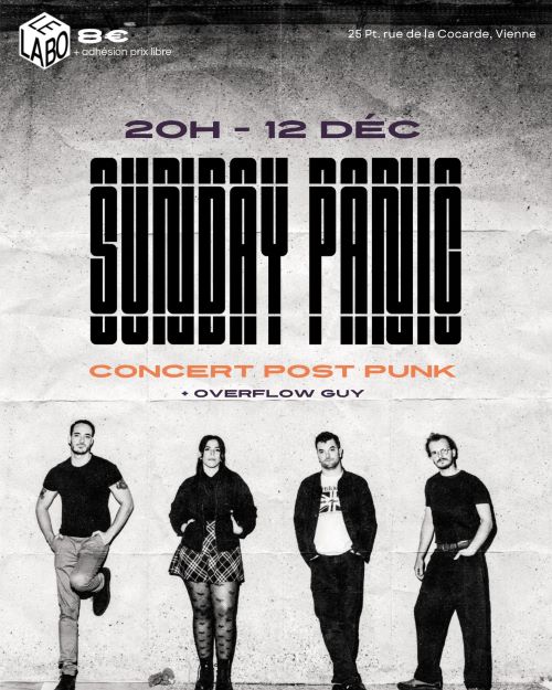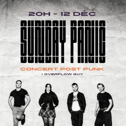 SUNDAY PANIC c’est le son d’une époque à bout de nerfs. Du post punk but, tendu comme un nerf à vif qui cogne où ça fait mal. Sur scène, pas de fioritures, juste de l’énergie brute. Une tension constante. Chaque morceau est un cri retenu, une pulsation sombre qui déborde. Les textes y parlent d’aliénation, de travail, de manipulation mais sans slogans ni postures. Juste le constat d’un monde qui broie.